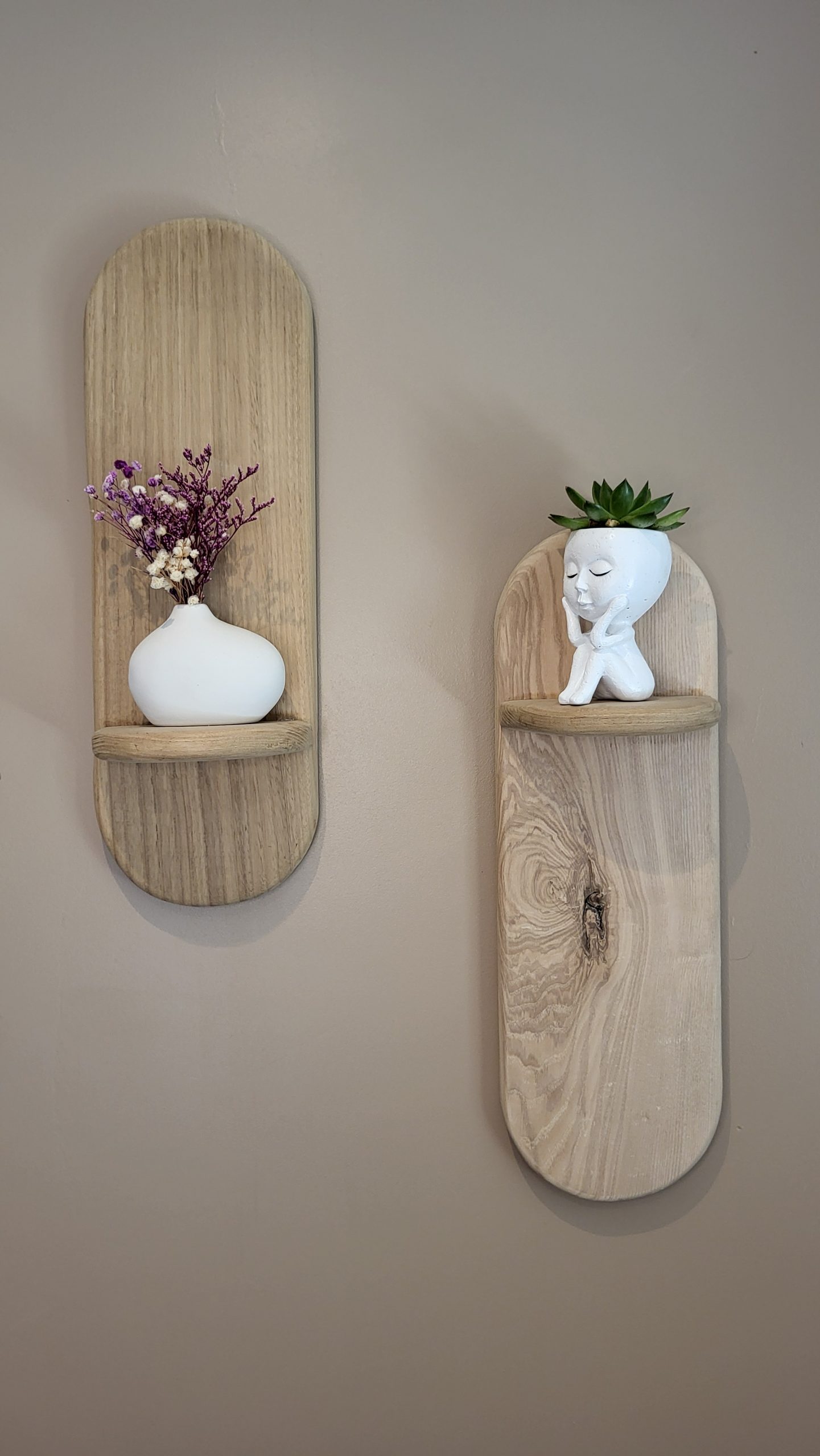 Leur design arrondi et minimaliste en fait de véritables pièces décoratives, parfaites pour sublimer vos plantes, vases ou objets préférés. Fabriquées en bois naturel, elles allient chaleur, élégance et durabilité. Installées dans un salon, une chambre ou même une entrée, elles transforment vos murs en véritables galeries d’art.