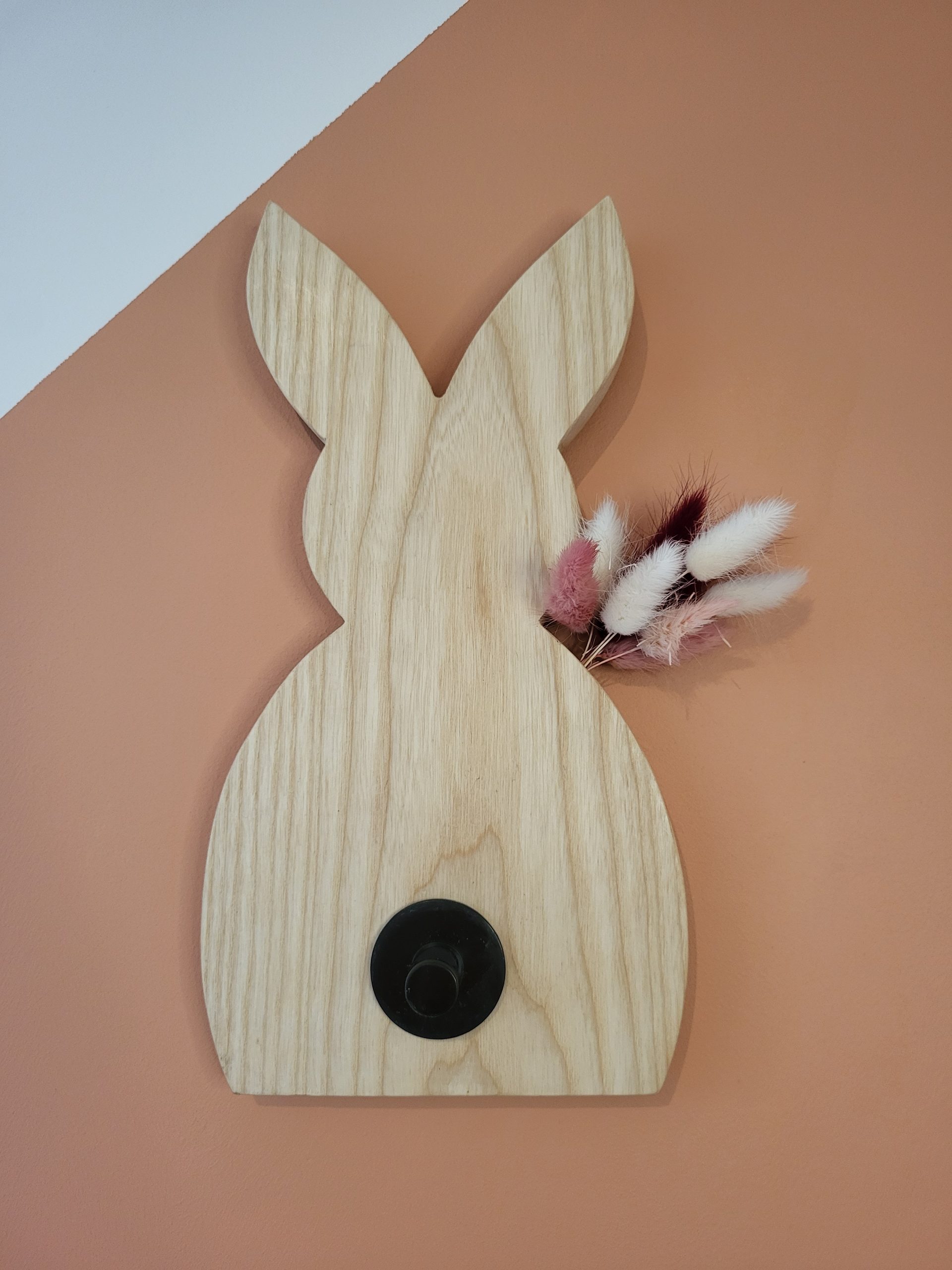 Découvrez nos porte-manteaux/patère originaux en bois en forme de lapin. Ce petit compagnon charmant est bien plus qu’un simple objet de rangement : il apporte un style unique et ludique tout en aidant les enfants à garder leur espace bien rangé.
