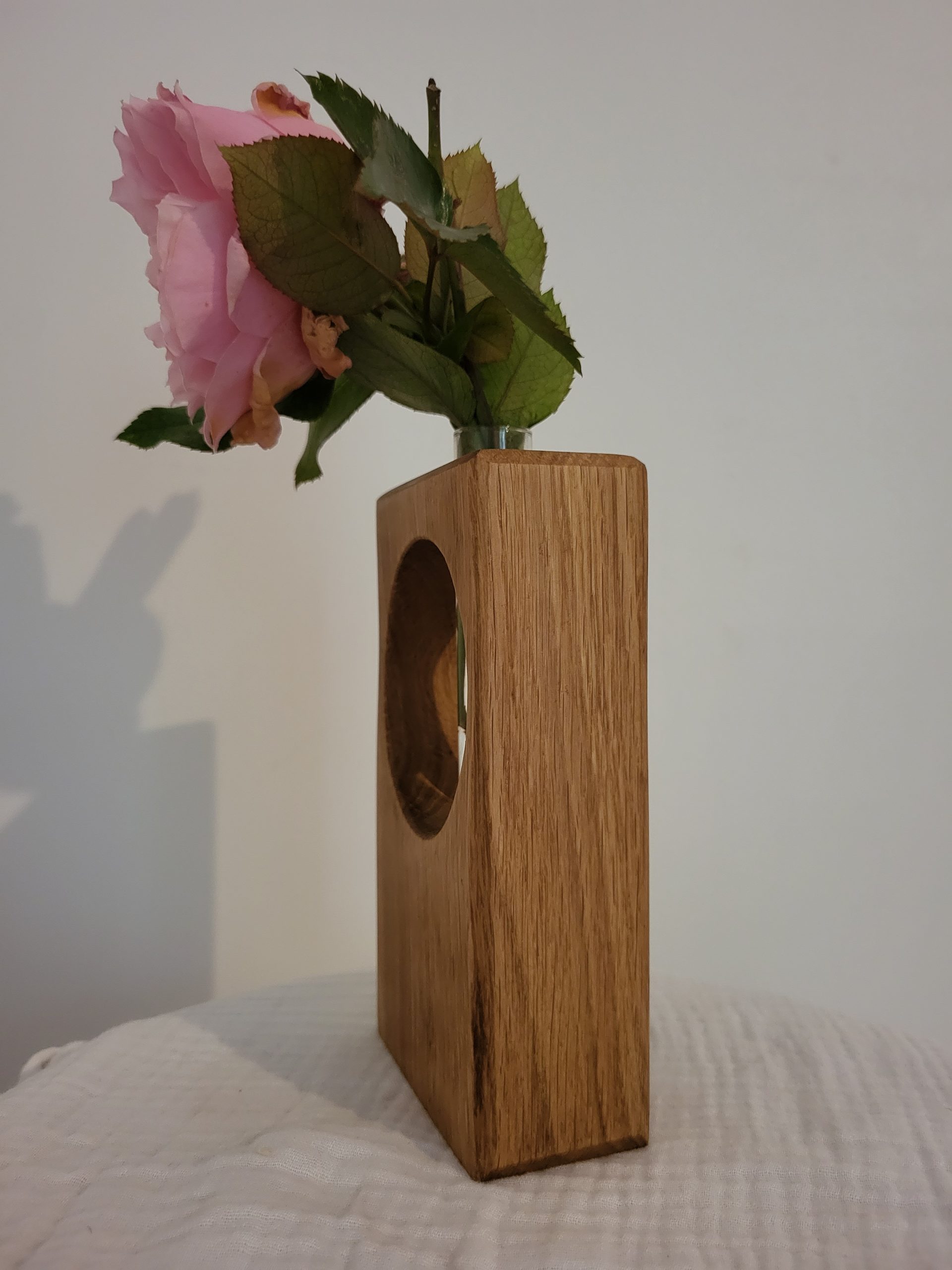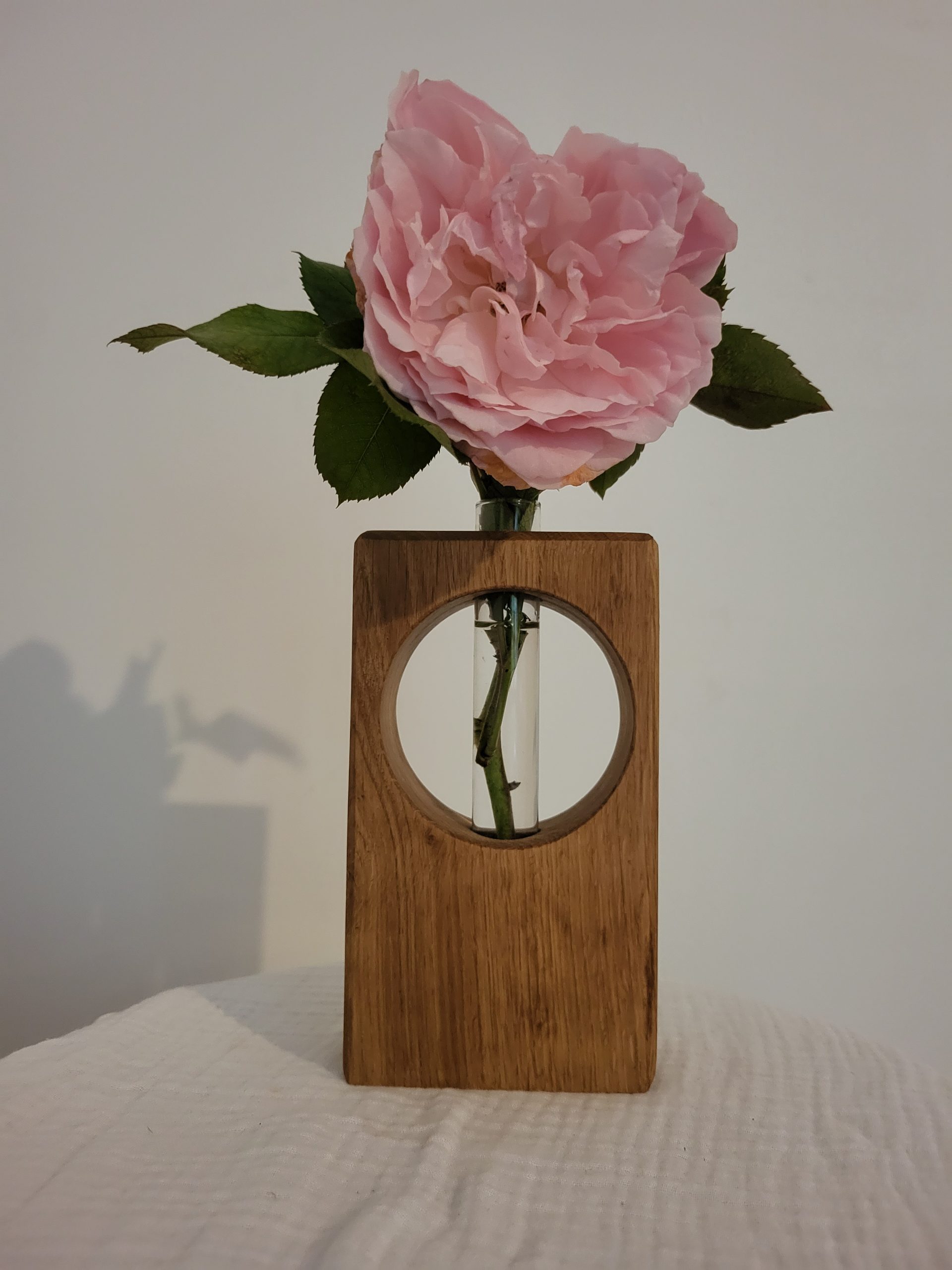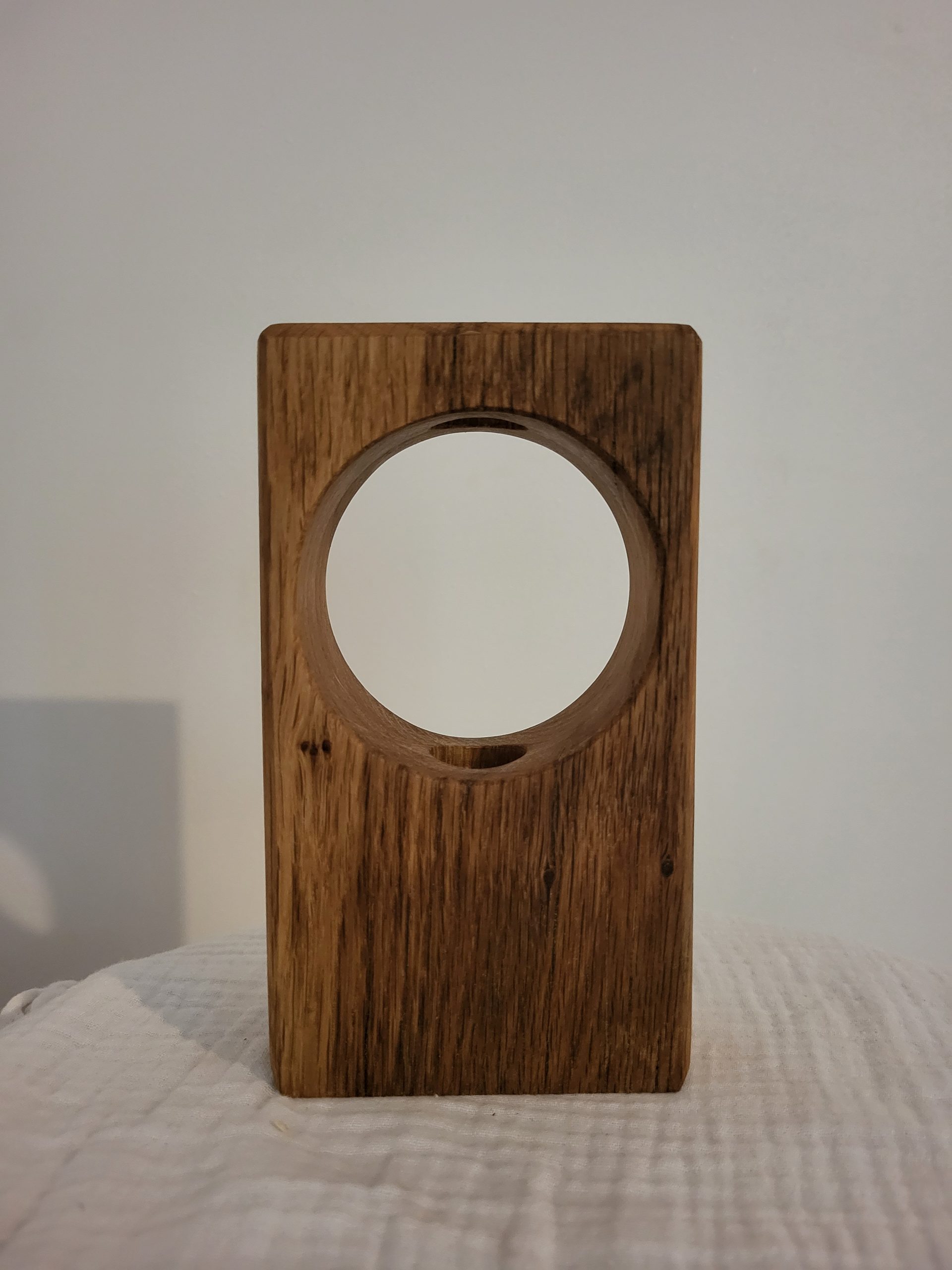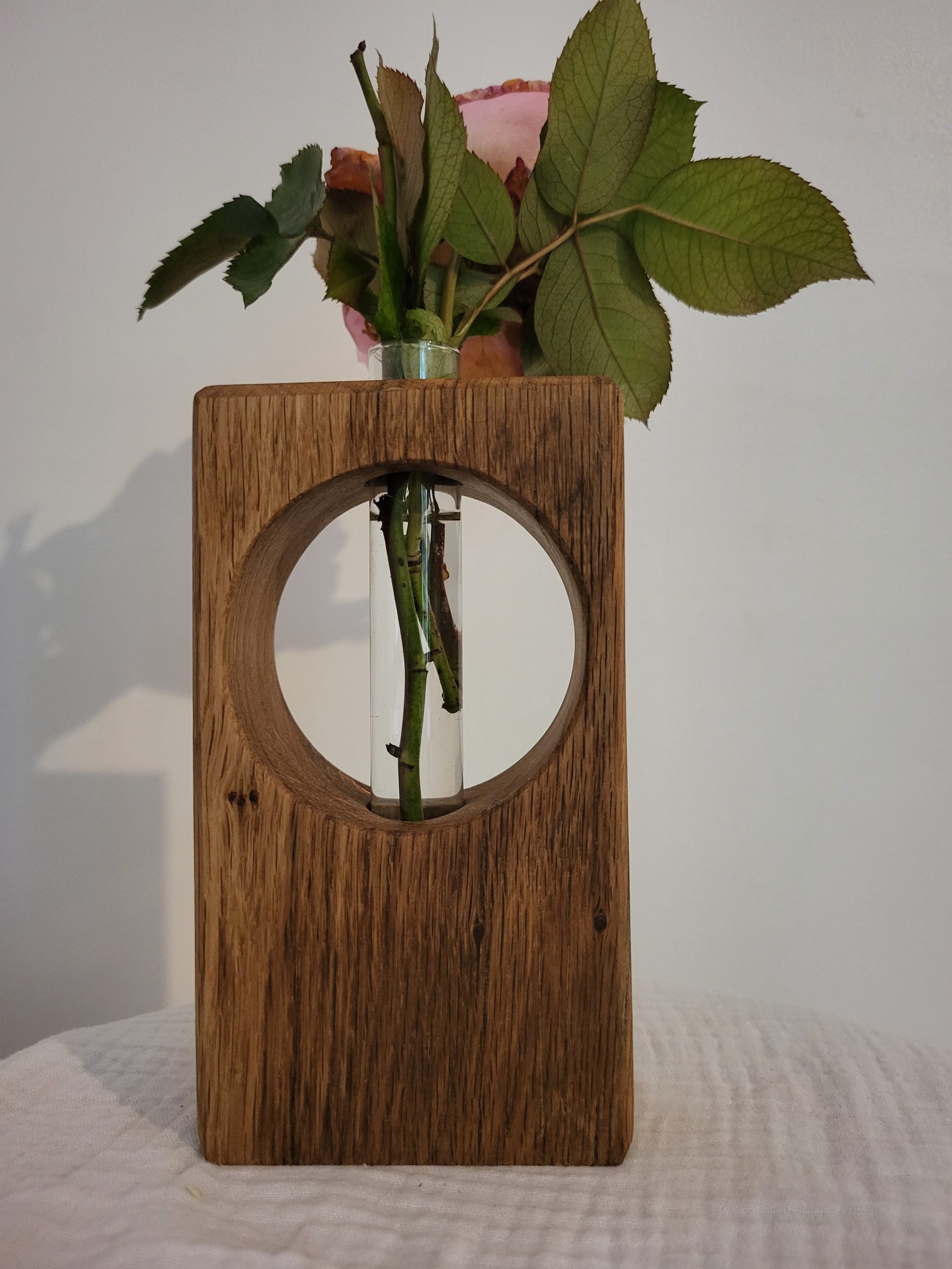 Découvrez l’élégance intemporelle de ce soliflore en Chêne, conçu à la main avec soin et passion avec une ancienne poutre de notre salon.