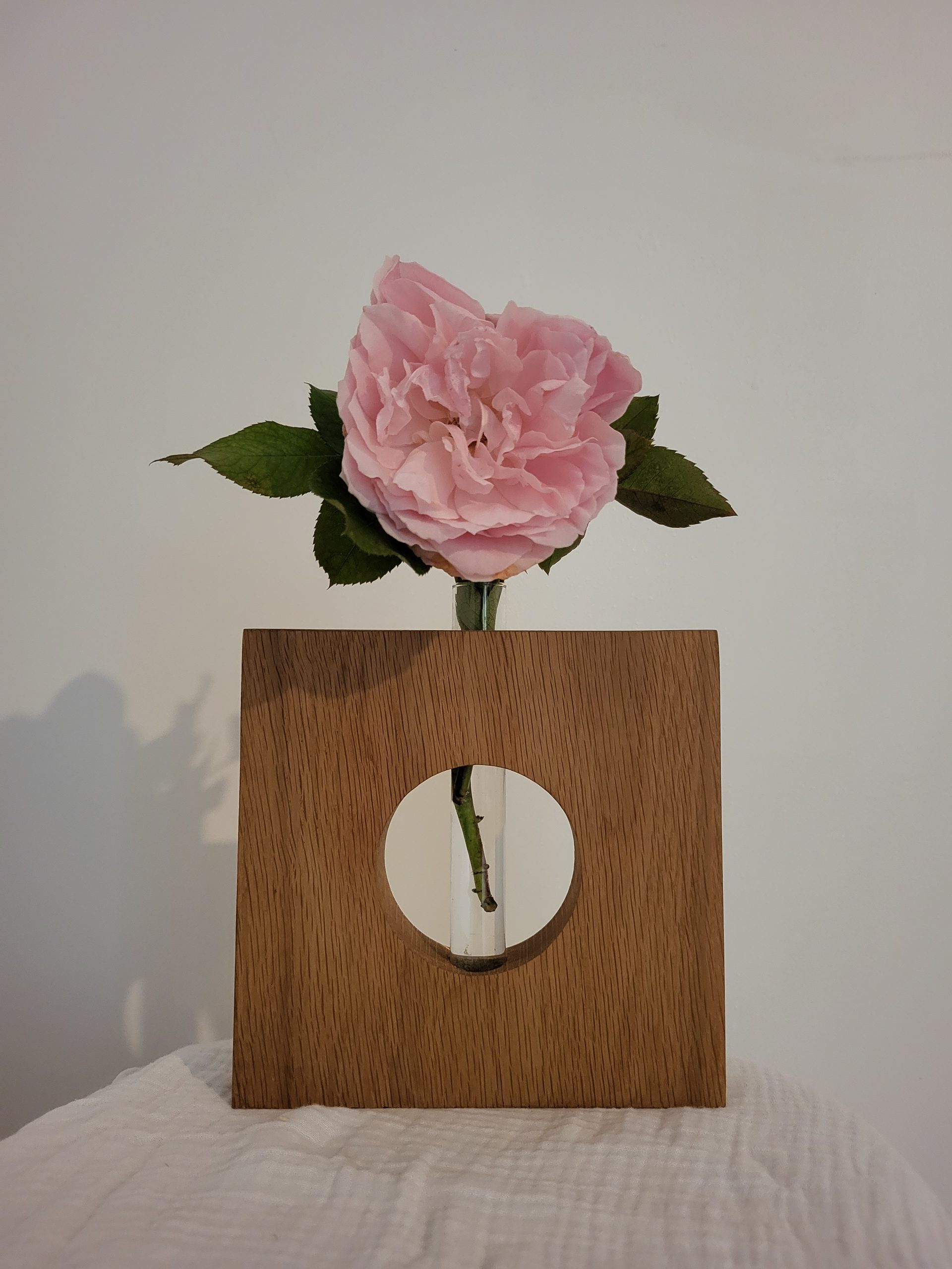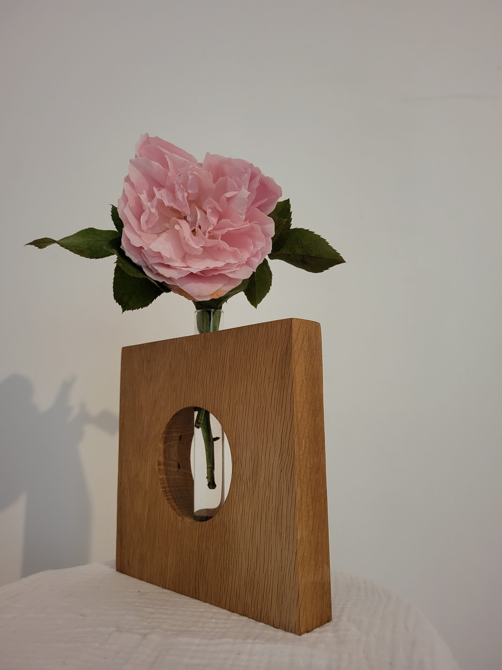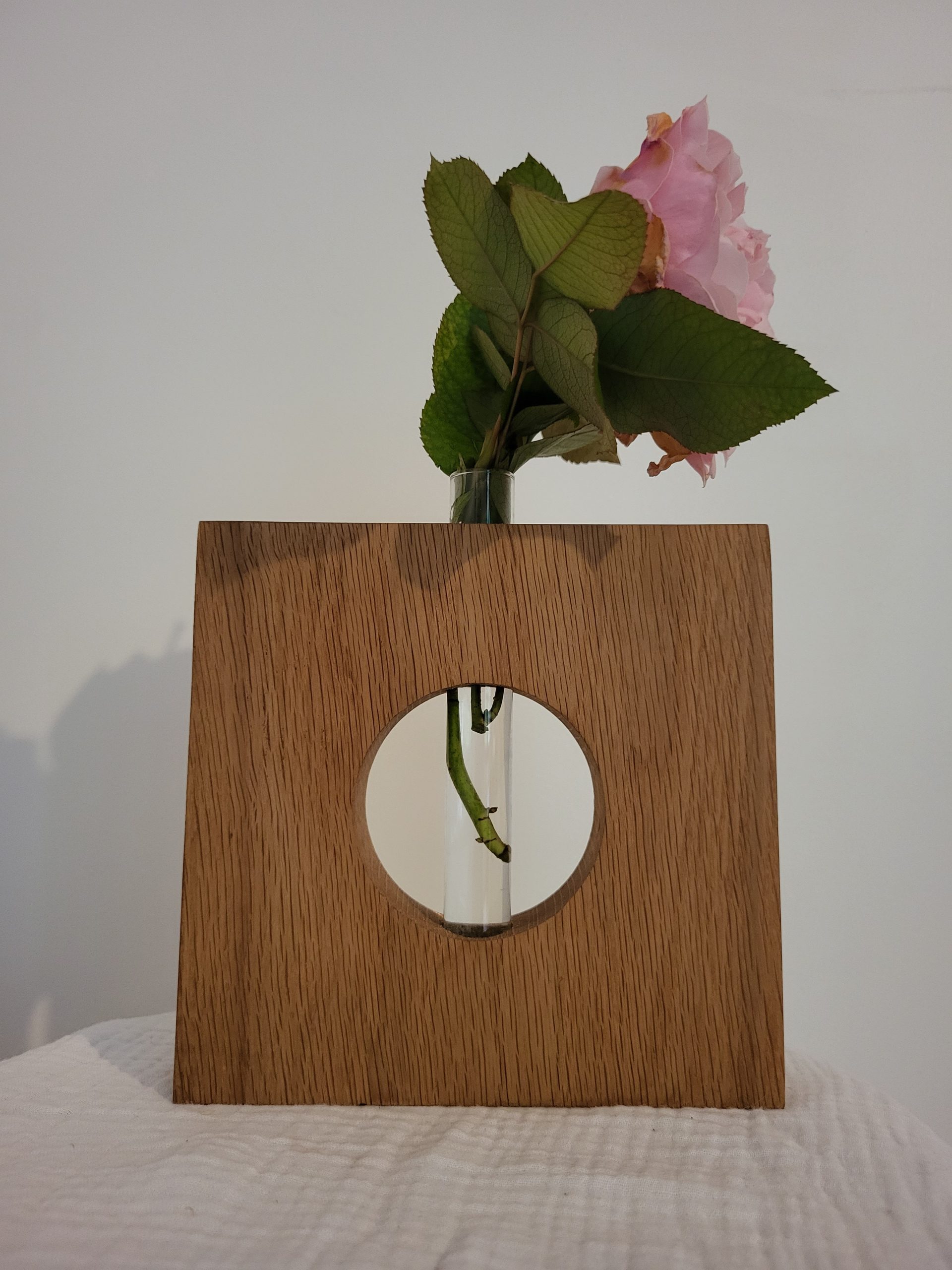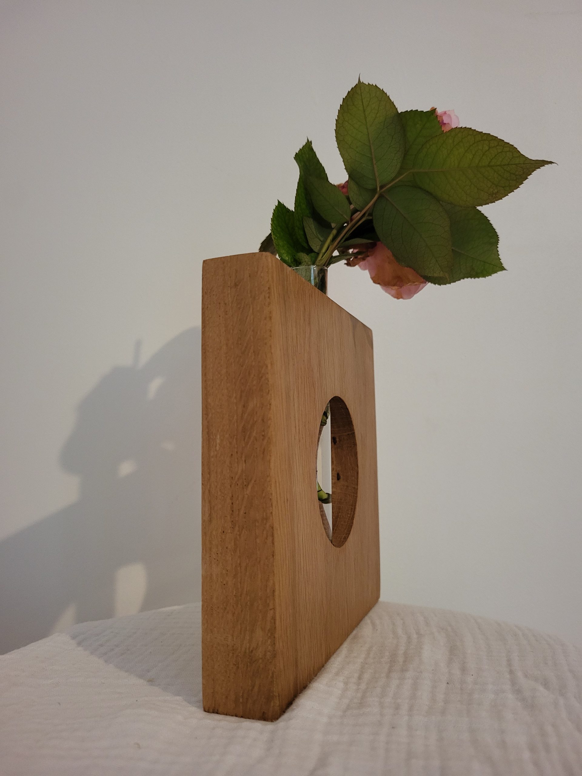 Découvrez l’élégance intemporelle de ce soliflore en Chêne, conçu à la main avec soin et passion avec une ancienne poutre de notre salon.