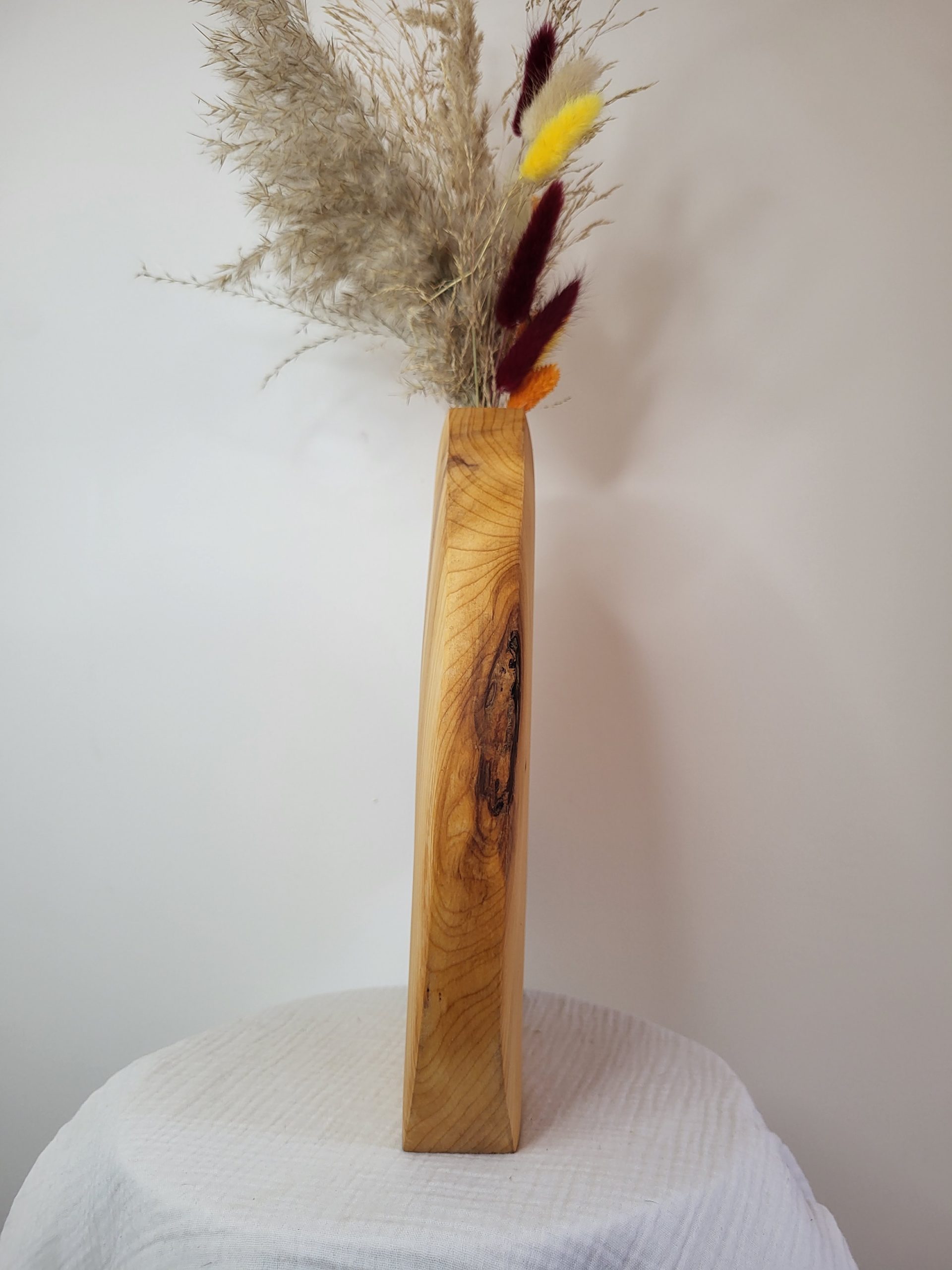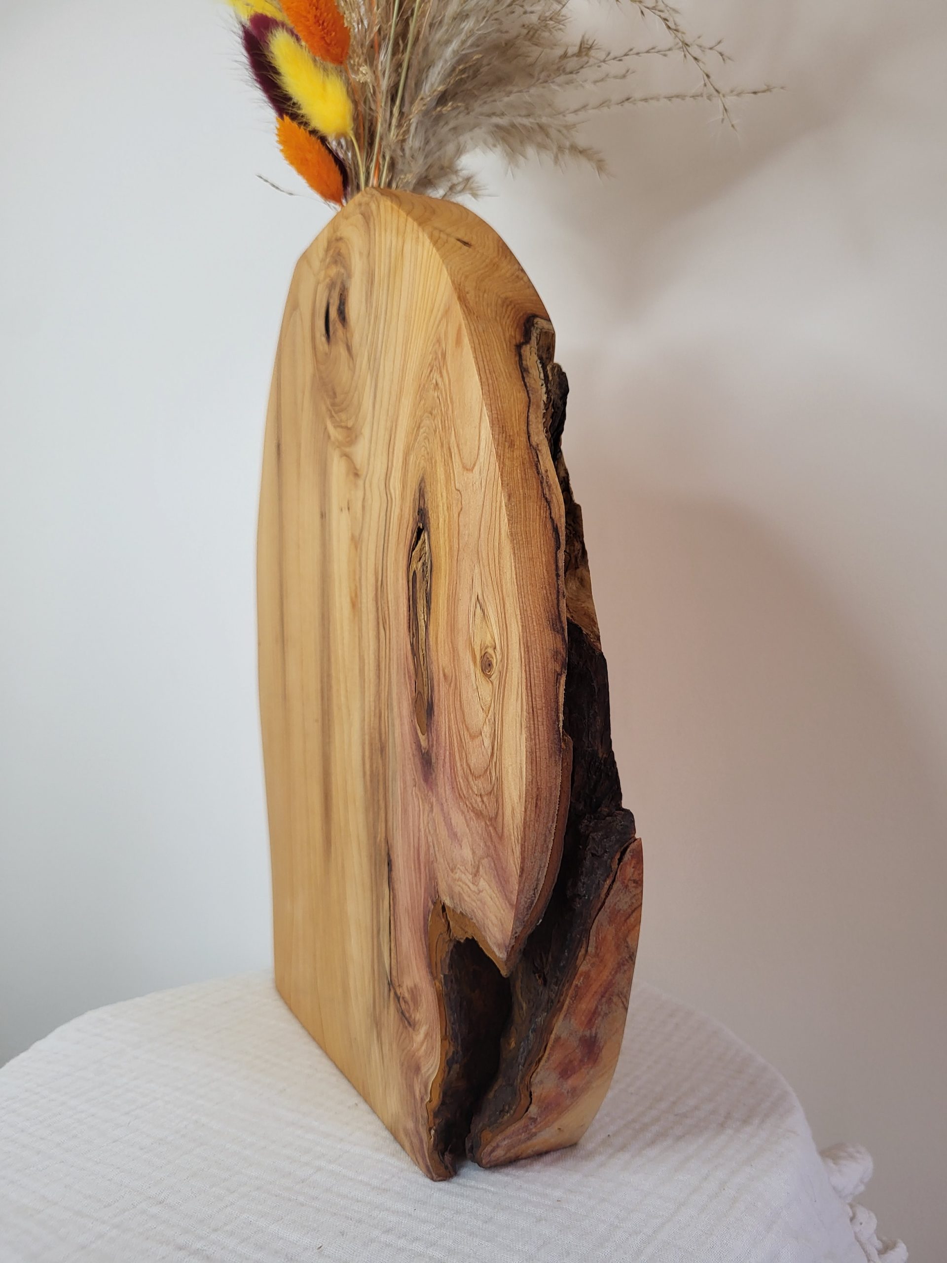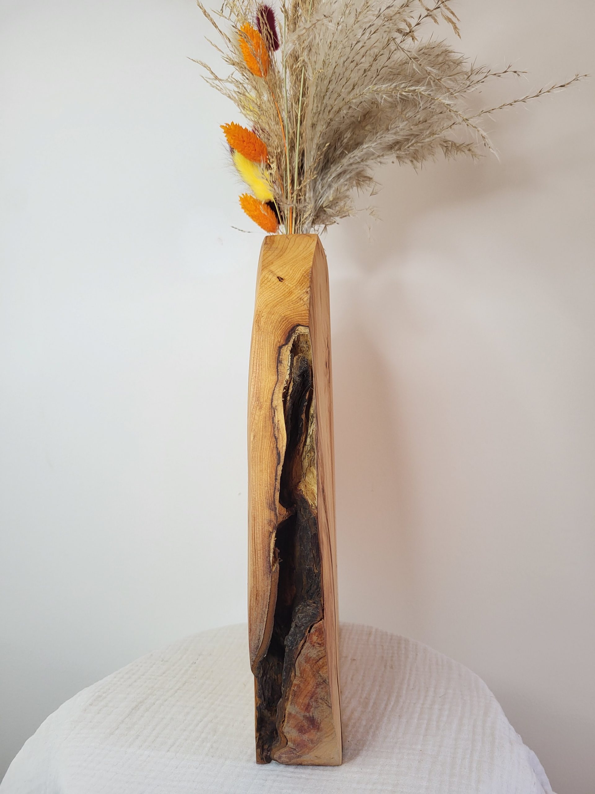 Idéal pour y accueillir des fleurs séchées, des branches sèches ou pour se suffire à lui-même comme élément de décoration, ce vase en bois apportera une note chaleureuse et intemporelle à n’importe quelle pièce de la maison.